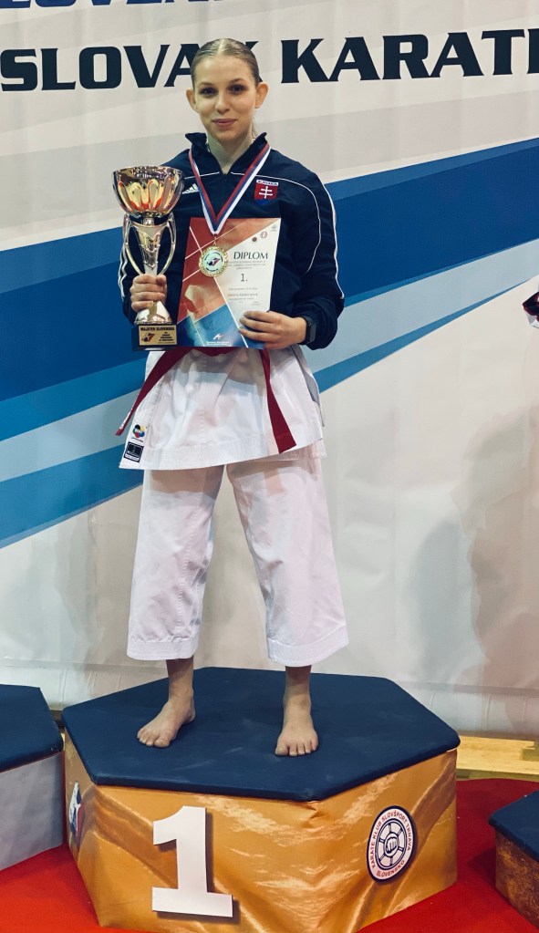 Dňa 3.decembra 2022 som sa zúčastnila Majstrovstiev Slovenska v karate 🥋, kde som v kategórií kata kadetky skončila na 1.mieste 🥇 a stala som sa tak Majsterkou Slovenska v karate 🥋 v kategorii kata kadetky 🏆.